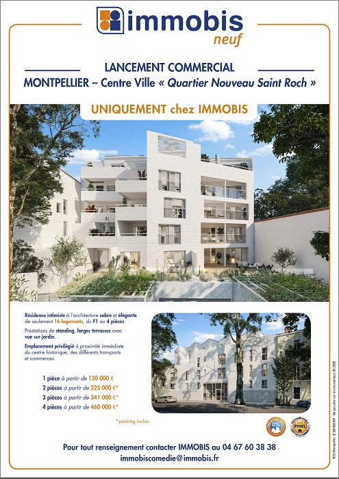 IMMOBIS, acteur majeur de l’immobilier neuf sur MONTPELLIER, vous propose en exclusivité cette nouvelle résidence d’exception à l’architecture sobre, des appartements spacieux baignés de lumière donnant sur de large terrasse toutes orientées SUD pour profiter au maximum de l’ensoleillement, du T2 au T4 avec des prestations haut de gamme